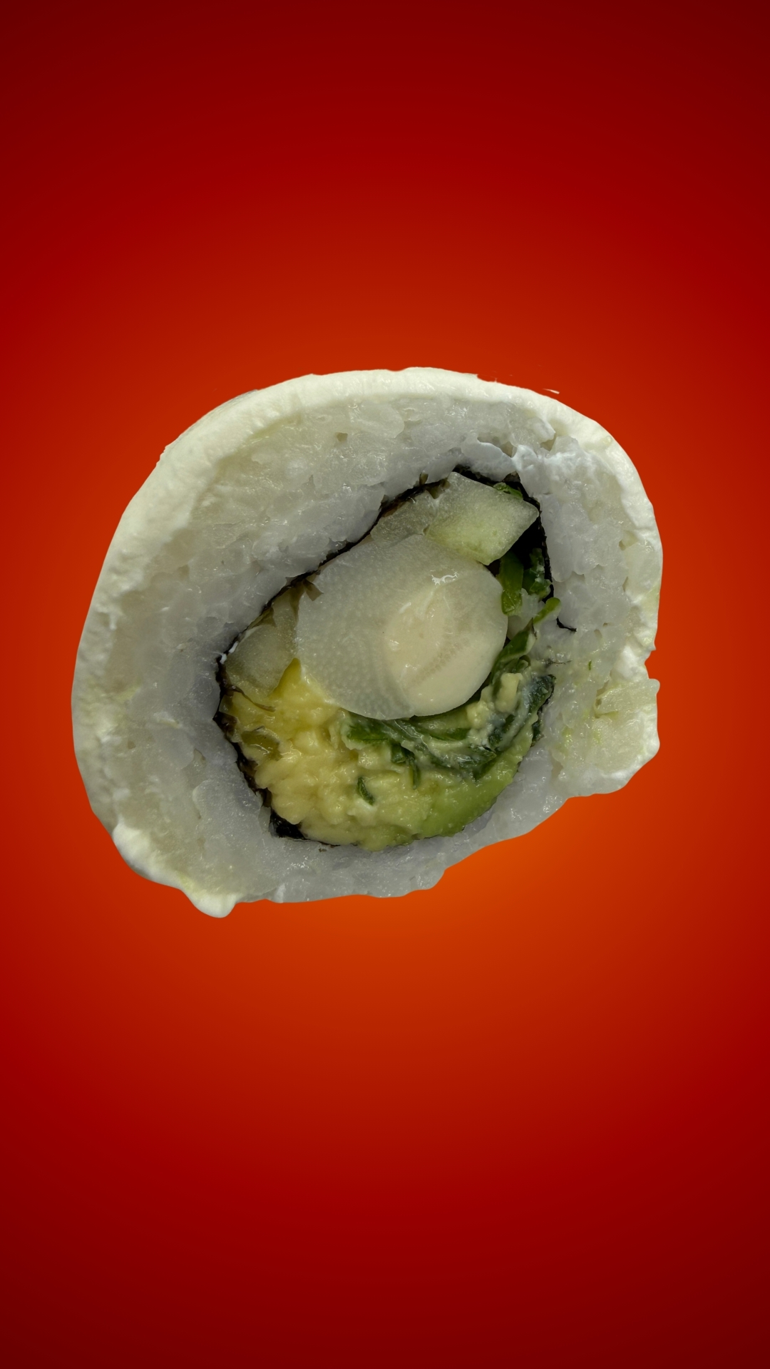 Palta, pepino, palmito y cebollín con envoltura de queso crema